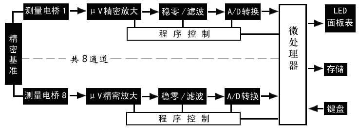 智能應(yīng)變測(cè)量?jī)x由應(yīng)變電橋、放大器、信號(hào)調(diào)理電路、微處理器、顯示記錄器等基本部分組成。