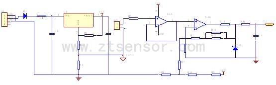 在設計氧濃度傳感器電路時,輸入、輸出端采用極性、過壓保護措施,以避免電源接反或輸出短路而造成氧濃度傳感器的損害。在電路設計中留有充裕量(冗余設計),包括電阻功率,晶體管功率及電容耐壓等,以保證使用期間不發熱,不爆炸。